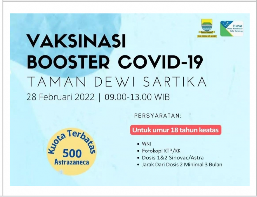 Jadwal Vaksinasi Booster Covid-19 Gratis di Taman Dewi Sartika Jalan Wastukencana Bandung.BANDUNG - Bagi Warga…