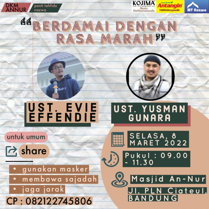 Kajian Selasa 8 Maret Ustadz Evie EffendieBANDUNG--- Kadang rasa marah tidak bisa dikendalikan bisa merugikan…