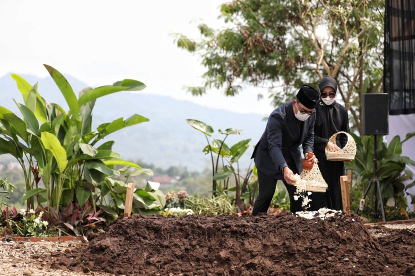 Ridwan Kamil menabur bunga di pemakaman Eril/DokBANDUNG---Gubernur Jabar Ridwan Kamil, terus menceritakan kebaikan almarhum putra…