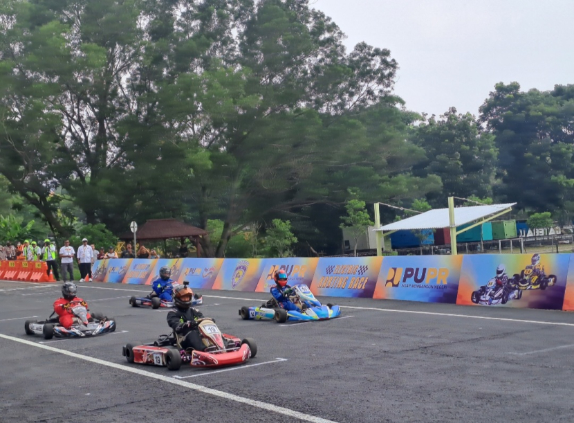 Menteri PUPR, Mochamad Basuki Hadimoeljono (baju merah) turut menjajal gokart listrik.BANDUNG---Kementerian Pekerjaan Umum dan Perumahan…