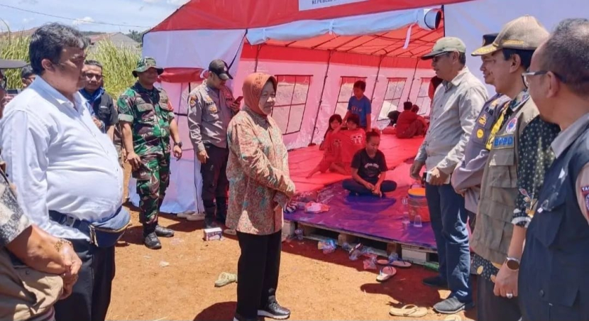 Menteri Sosial Tri Rismaharini atau sering disapa Risma meninjau bencana tanah longsor di Cibadak SukabumiSUKABUMI----Menteri…