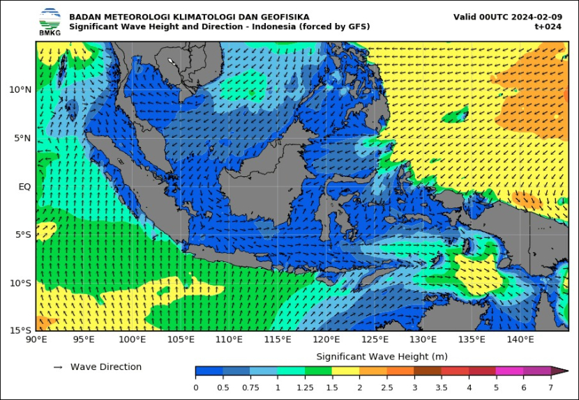 Angin : dari arah barat daya hingga barat laut, 05 – 45 km/jam.
