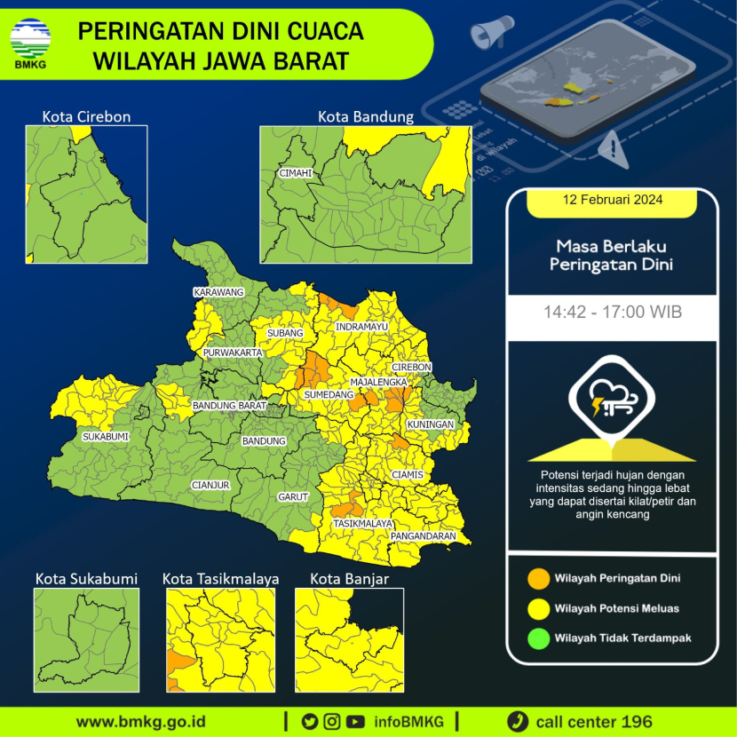 Prakiraan Cuaca Jabar Hari Ini 19 Februari 2024, Hujan Lebat di Bandung, Subang, Cianjur