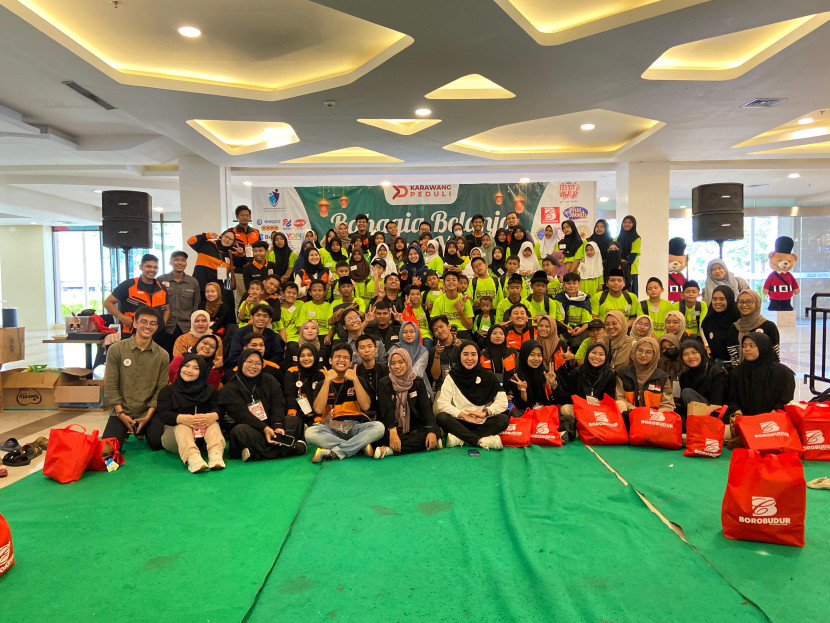 Momen foto bersama kegiatan Karawang Peduli yang menggelar program Bahagia Belanja Bareng Anak Yatim, Sabtu…