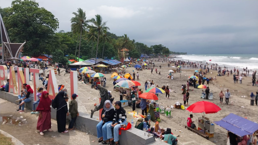 Kondisi obyek wisata Pantai Selatan Sukabumi di momen libur lebaran tahun 2024.SUKABUMI--Momen libur lebaran mampu…
