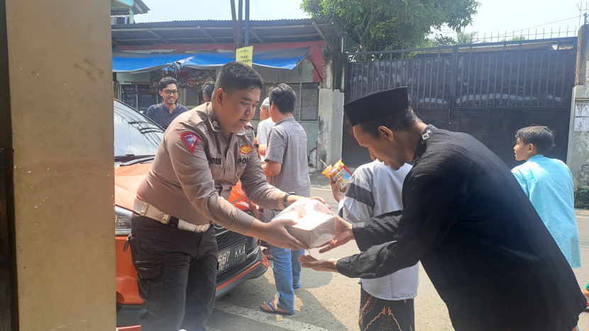 Anggota Polsek Citamiang Polres Sukabumi Kota membagikan nasi kotak ke warga, Jumat (17/5/2024).SUKABUMI--Ratusan warga Nanggeleng,…