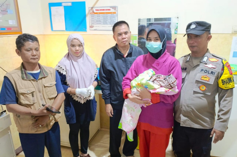 Bayi yang ditemukan semak-semak kebun milik warga Kampung Mekarjaya Desa Sirnaresmi Gunungguruh, Kabupaten Sukabumi pada…