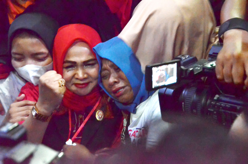 Sepontanitas kegembiraan ibu dari Pegi Setiawan, dan pengunjung sidang usai sidang putusan praperadilan Pegi Setiawan…