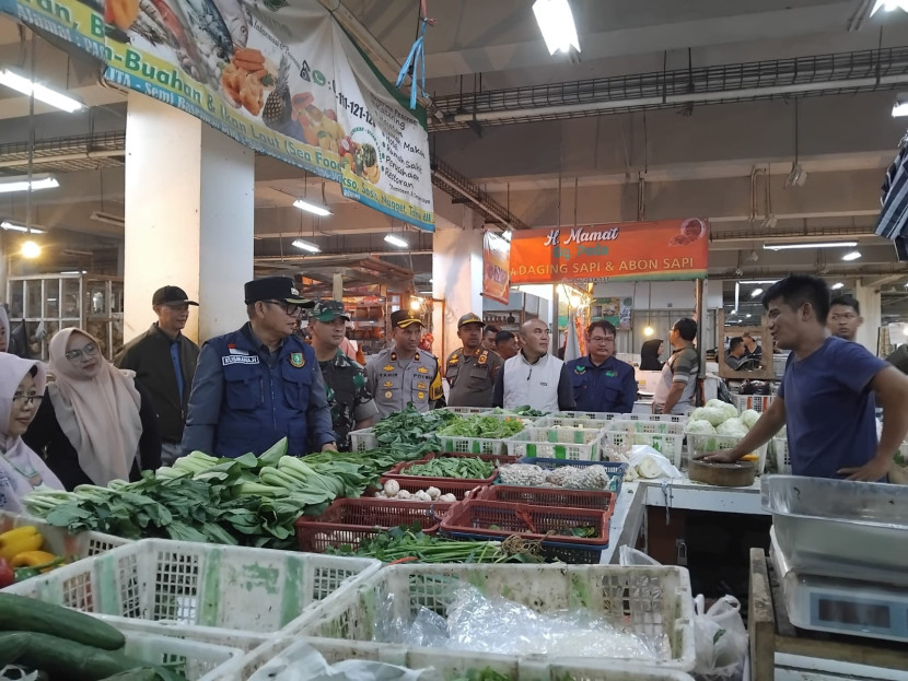 Unsur Forkopimda memantau perkembangan harga dan ketersediaan sembako jelang lebaran di Pasar Pelita Kota Sukabumi,…