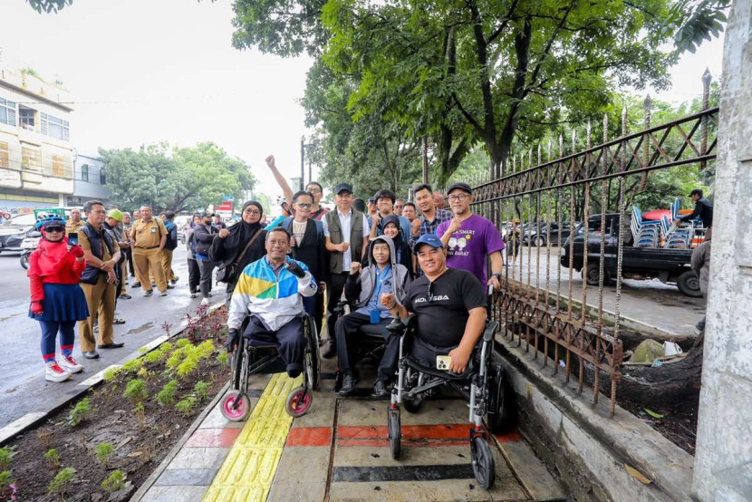 Sejumlah perwakilan disabilitas dan Pj Wali Kota Bandung A Koswara meninjau trotoar Tegallega. Foto: Diskominfo…