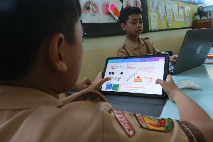 Siswa SD di Bandung sedang mengerjakan projek bertema Perjalanan Isra MirajBANDUNG--Memperingati dan memaknai Isra Miraj…
