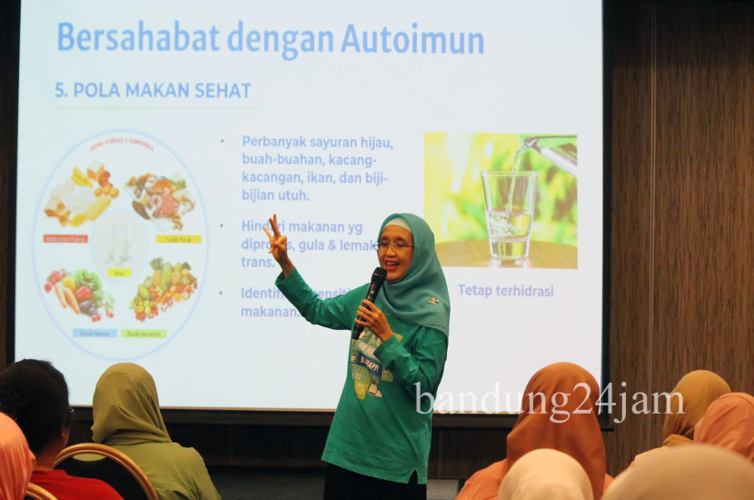 Dian Syarief (Survivor Autoimun dan Founder SDF) menyampaikan pemaparan saat acara Simposium Awam Autoimun dan…