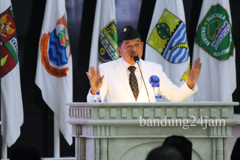 Wakil Wali Kota Bandung Erwin, memberikan pembekalan kepada para santri pondok pesantren se-Kota Bandung dalam…