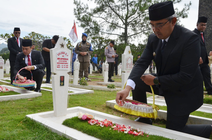 Wali Kota Bandung Muhammad Farhan bersama Forkopimda melakukan tabur bunga memperingati Bandung Lautan Api (BLA),…