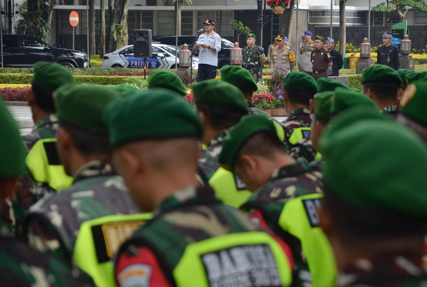 Apel Patroli gabungan TNI-Polri di Apron Base Ops Lanud Husein Sastranegara, Kota Bandung. Foto: Dok…