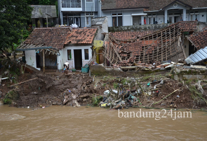 Sejumlah rumah hancur setelah diterjang banjir bandang di Kampung Guha Mulya, Kecamatan Cipatat, Kabupaten Bandung…