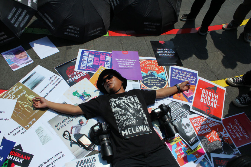 Jurnalis yang tergabung dalam Aliansi Jurnalis Independen (AJI) Bandung, Pewarta Foto Indonesia (PFI), dan sejumlah…