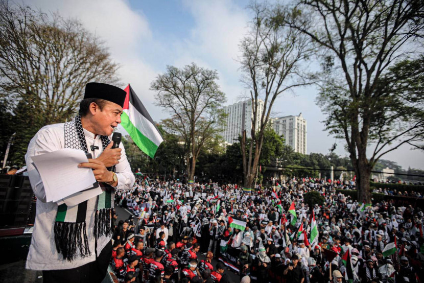 Wakil Wali Kota Bandung, Erwin juga turut berorasi pada Aksi Bela Palestina di Gasibu, Kota…