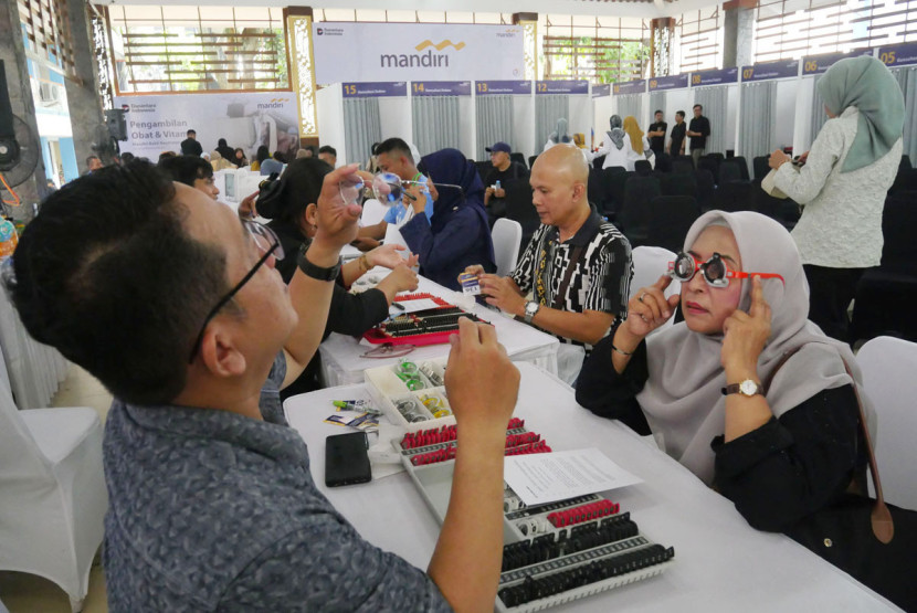 Pemeriksaan mata dan membagi ribuan kacamata secara gratis saat acara Mandiri Bakti Kesehatan, di Kampus…