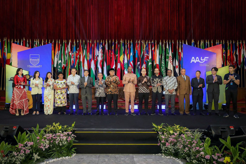 Wali Kota Bandung Muhammad Farhan berfoto bersama dengan sejumlah anak muda perwakilan dari sejumlah negara…