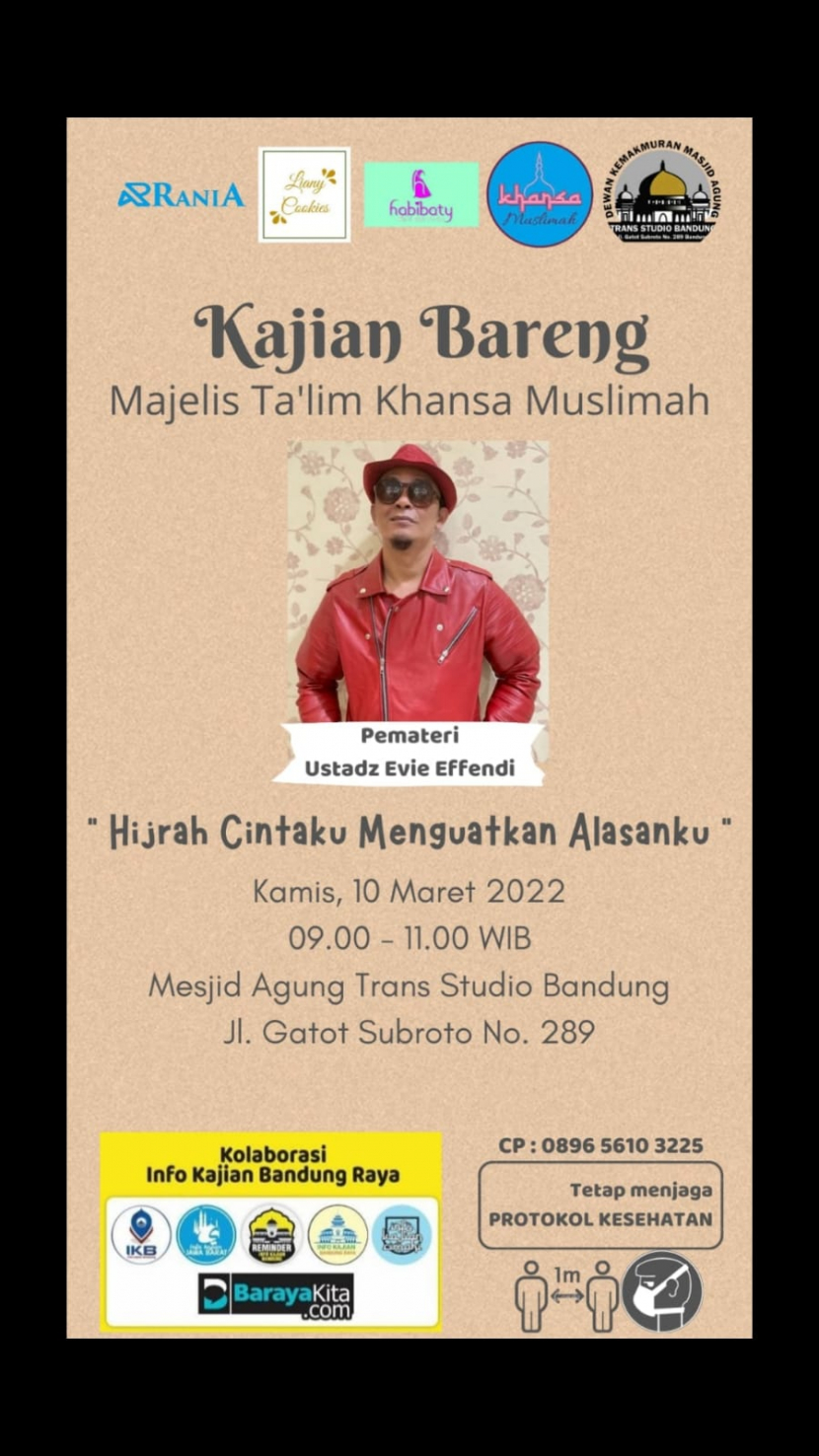 Kajian Selasa 8 Maret Ustadz Evie EffendieBANDUNG--- Kadang rasa marah tidak bisa dikendalikan bisa merugikan…