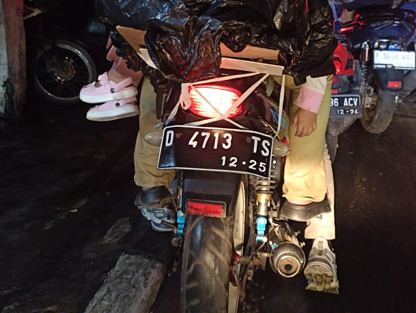 Pemudik bersepeda motor bermanuver di antara padatnya kendaraan di Jl Raya Cibiru -Cileunyi - Rancaekek,…