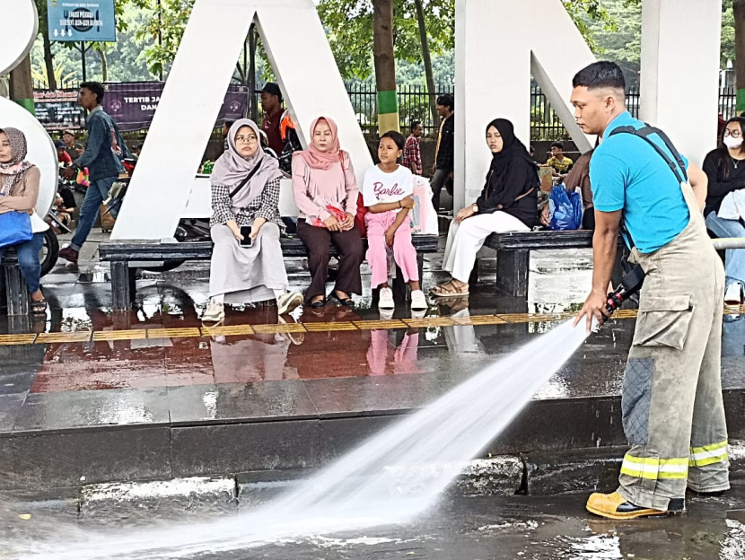 Bersihkan Halte Alun-Alun Bandung, Pemkot Kerahkan Truk Pemadam Kebakaran