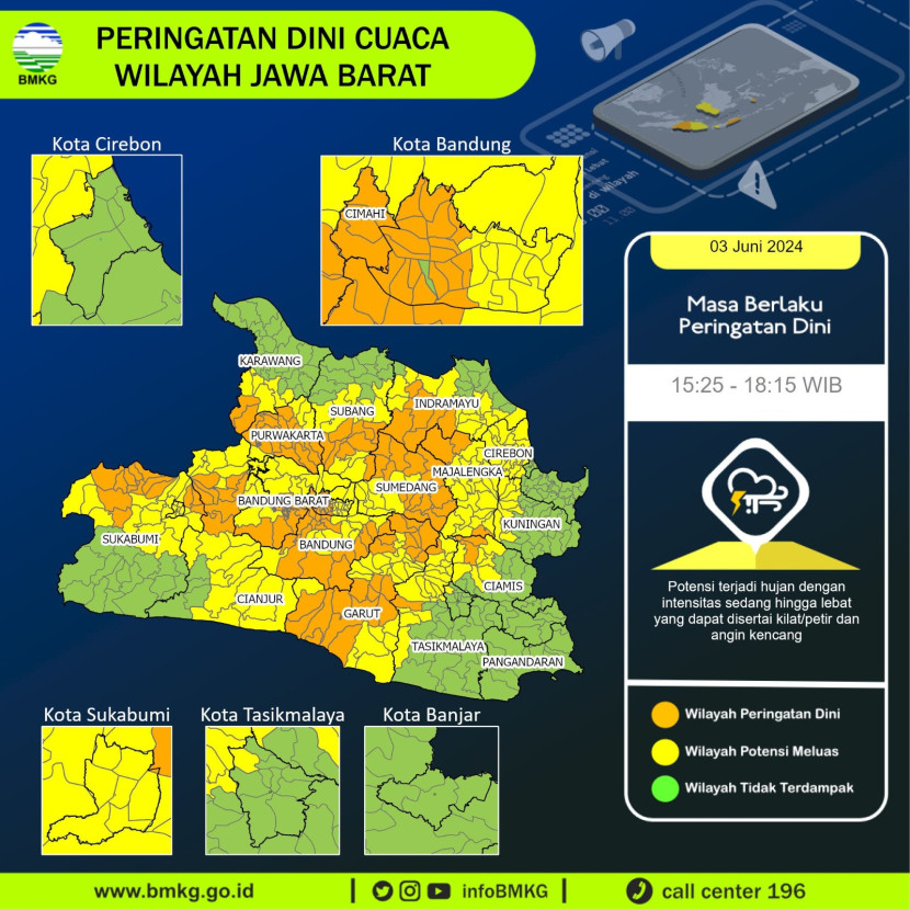 Prakiraan Cuaca Jabar Hari Ini 24 Juni 2024, Hujan di Bandung, Karawang, Subang