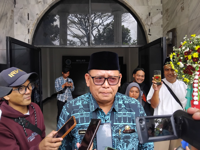 Pj Wali Kota Sukabumi Kusmana Hartadji saat memberikan keterangan kepada wartawan di Gedung Pusat Kajian…