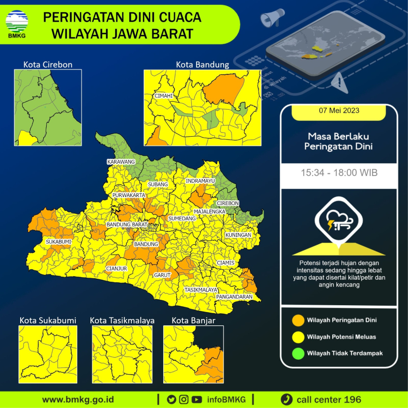 Ilustrasi Prakiraan Cuaca JabarBANDUNG---Prakiraan cuaca Jabar hari ini, 8 Mei 2023, di hari Senin ini…