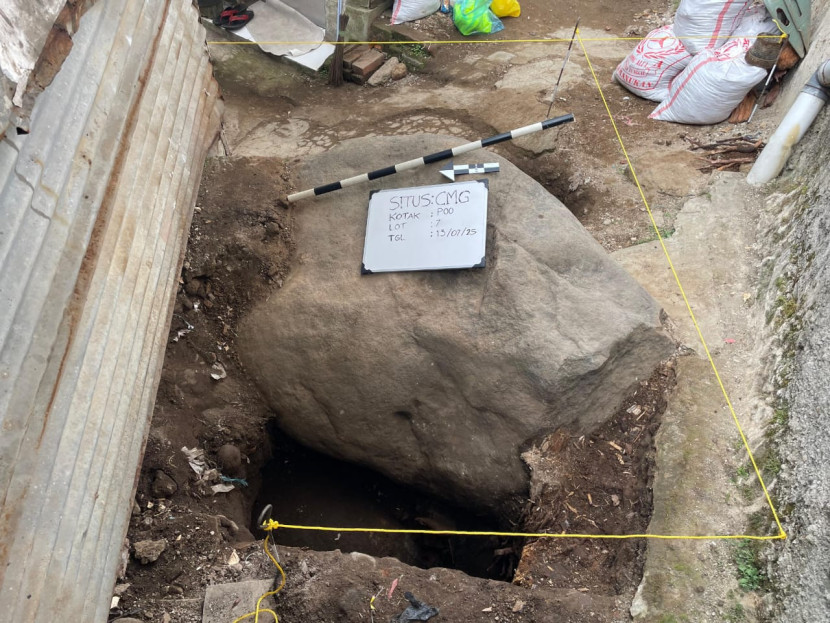 Batu yang diduga sebagai Prasasti Cikapundung Tamansari, di Kampung Cimaung, Kelurahan Tamansari, Kecamatan Bandung Wetan,…