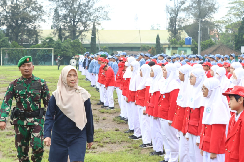 Direktur MPDH Ruri B Ramadhanti sedang memeriksa kerapihan siswaBANDUNG---Ratusan siswa sekolah islam di Bandung, Darul…
