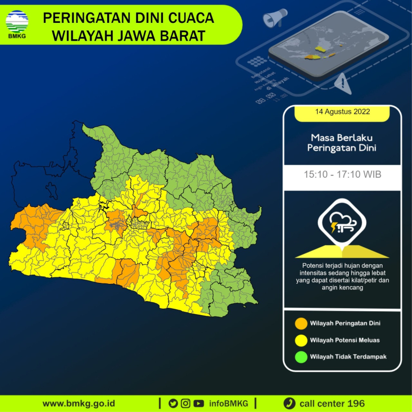 Ilustrasi Prakiraan Cuaca Jabar Hari IniBANDUNG---Prakiraan cuaca Jabar hari ini, Ahad 14 Agustus 2022, di…