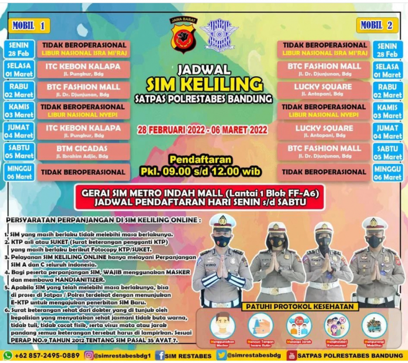 Jadwal SIM Keliling di Kota Bandung, Selasa 1 Maret salahsatu lokasinya berada di ITC Kebon…