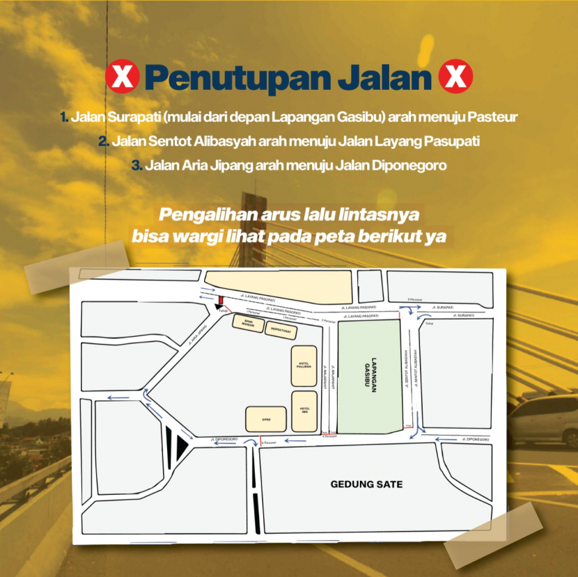 Sejumlah Ruas Jalan Menuju Pasupati Dialihkan, Ini Jalan yang akan Ditutup!