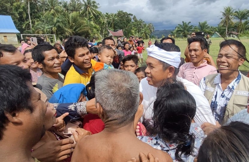 Gubernur Jawa Barat Dedi Mulyadi berbincang dengan warga terdampak bencana di Provinsi Aceh. Foto: Diskominfo…