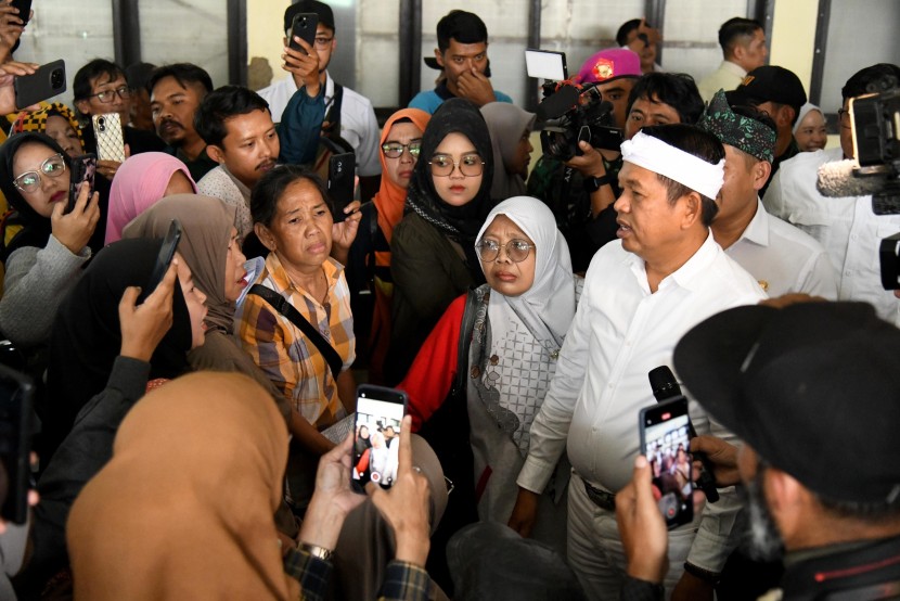 Gubernur Jabar Dedi Mulyadi bertemu warga yang terdampak banjir di Bojongsoang, Kabupaten Bandung, Rabu (10/12/2025).…