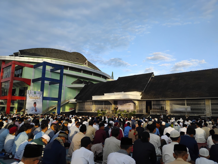 Suasana pelaksanaan Shalat Idul Fitri di Lapang Merdeka Kota Sukabumi, Rabu (10/4/2024).SUKABUMI--Ribuan warga mengikuti Shalat…