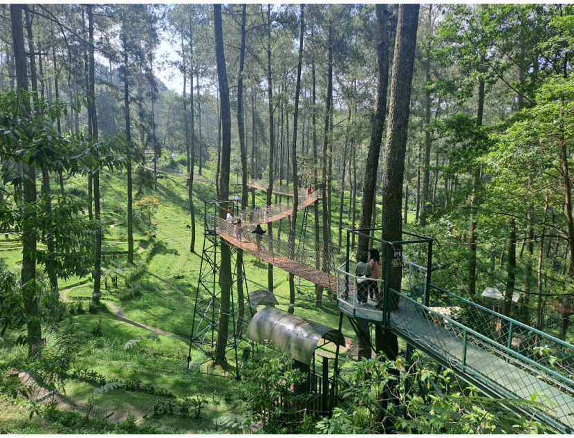 Salah satu spot yang menjadi ikonik di Orchid Forest Cikole adalah Wood Bridge BANDUNG---Wisatawan, masih…