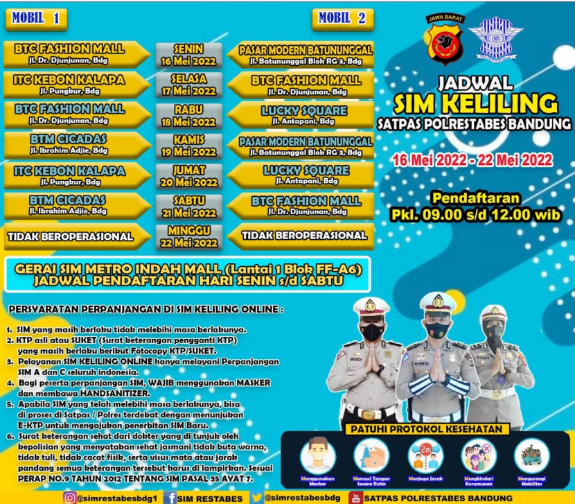 IIustrasi Perpanjangan SIM Keliling BandungBANDUNG---Jadwal SIM Keliling Bandung hari ini, Rabu 1 Juni 2022, walaupun…