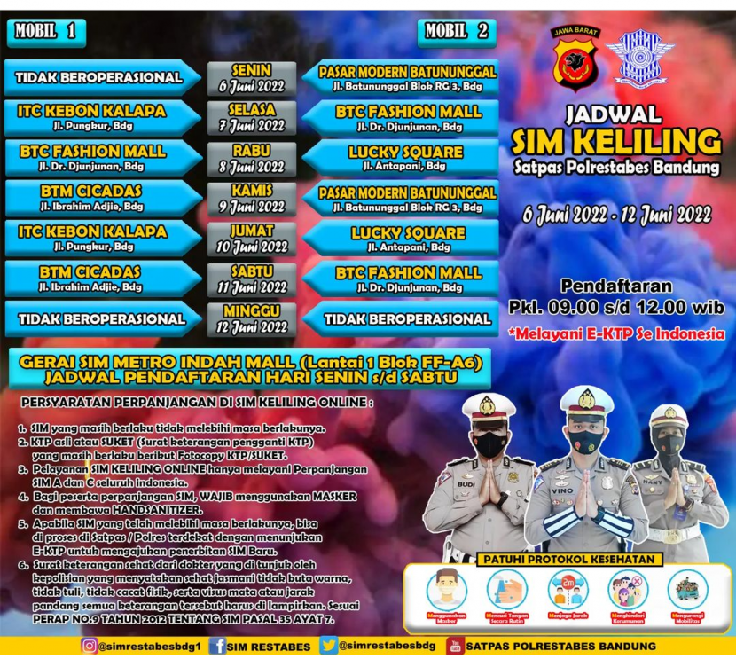 SIM Keliling BandungBANDUNG---Jadwal SIM Keliling Bandung hari ini, Sabtu 27 Mei 2022, SIM Keliling masih…