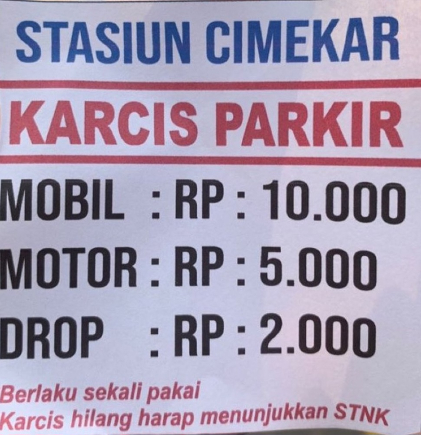 Karcis parkir di stasiun cimekar/tangkapan layar InstagramBANDUNG----Parkir liar dengan menggetok tarif parkir yang mahal, marak…
