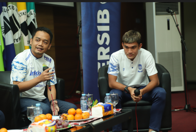 Pemain Persib Ridwan Ansor dan Zalnando saat membagikan pengalamannya ke mahasiswa UnibasBANDUNG---Unisba berkolaborasi dengan Persib…