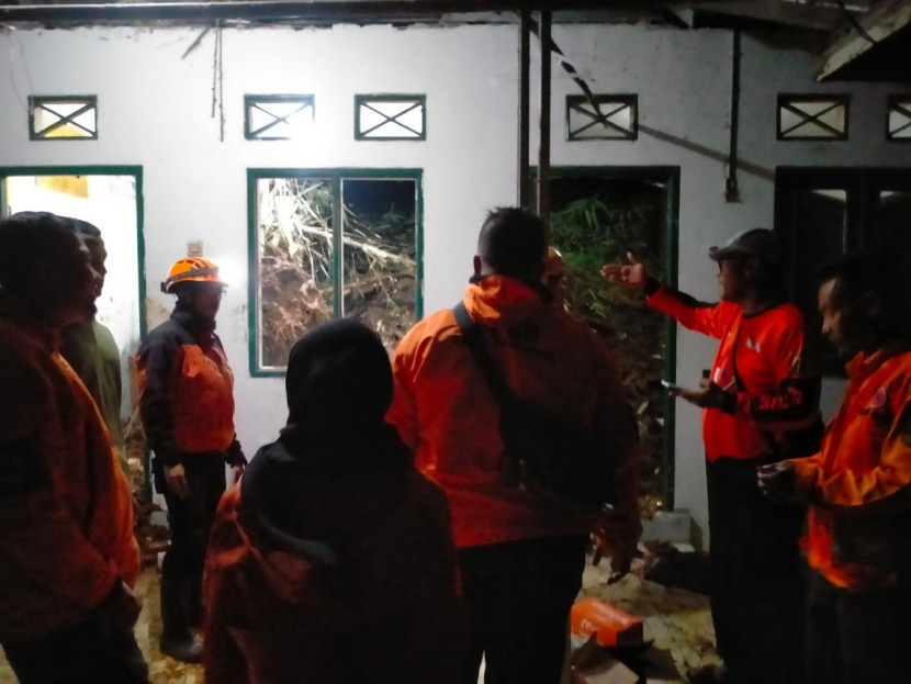 Petugas BPBD Kabupaten Sukabumi melakukan penanganan di lokasi longsor Desa Cipetir, Kecamatan Kadudampit, Kabupaten Sukabumi,…
