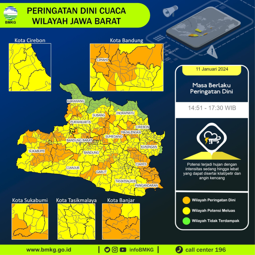 Prakiraan Cuaca Jabar Hari Ini 12 Januari 2024, Siang Hujan di Bandung, Subang, Sumedang