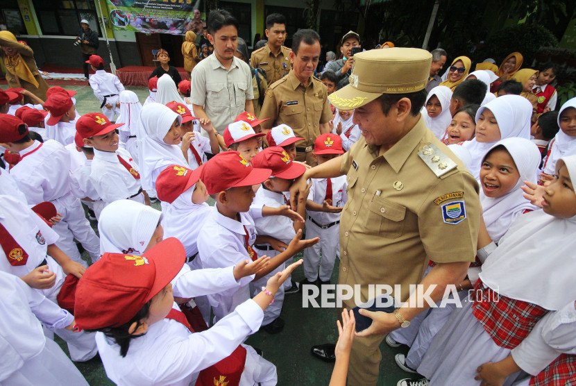 Wakil Wali Kota Bandung, Erwin, menyapa para siswa baru saat membuka kegiatan Masa Pengenalan Lingkungan…