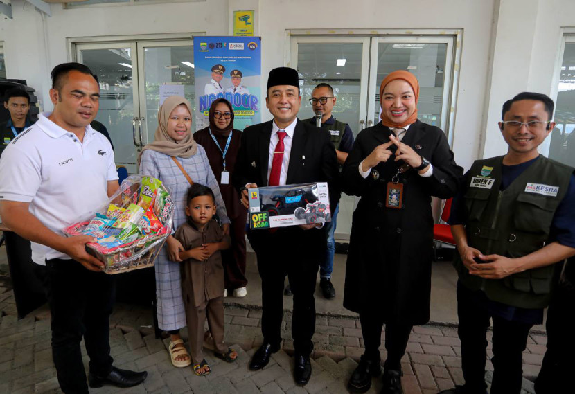 Wakil Wali Kota Bandung Erwin memberikan bingkisan kepada anak yang di khitan saat acara Ngakhitan…